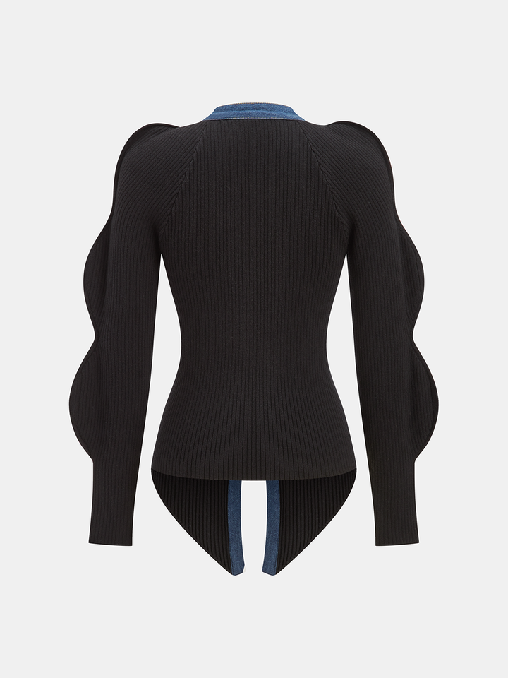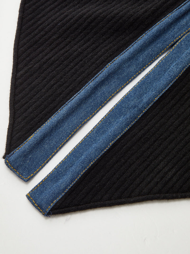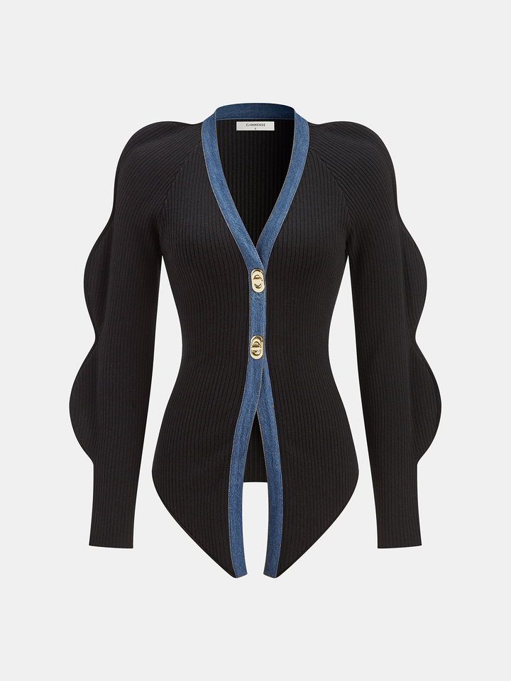 Taraklı Kollu Kot Panelli Ribanalı Hırka