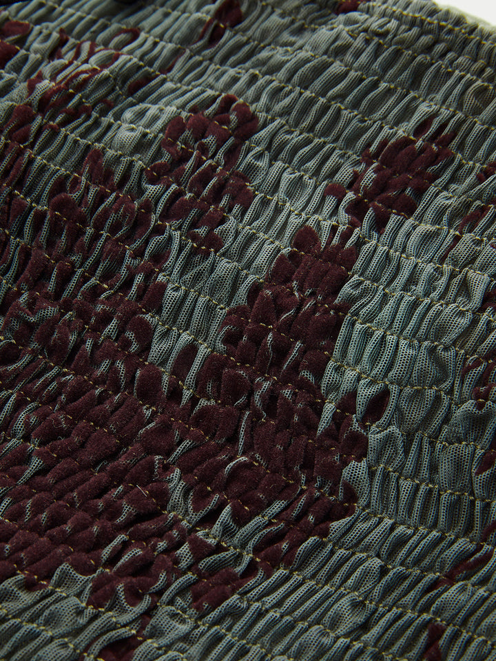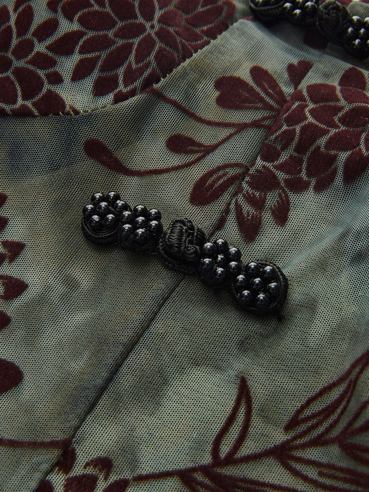 Yarı Şeffaf Düğme Detaylı Kadife Çiçekli Atlet