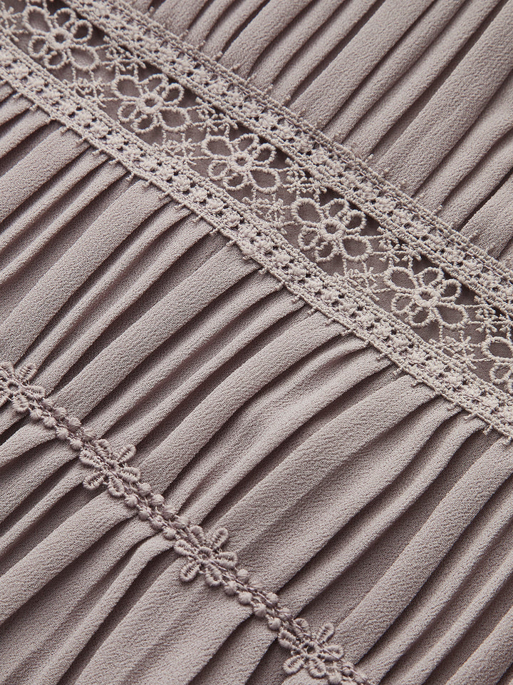 Yarı Şeffaf Düğmeli Pileli Şifon Bluz