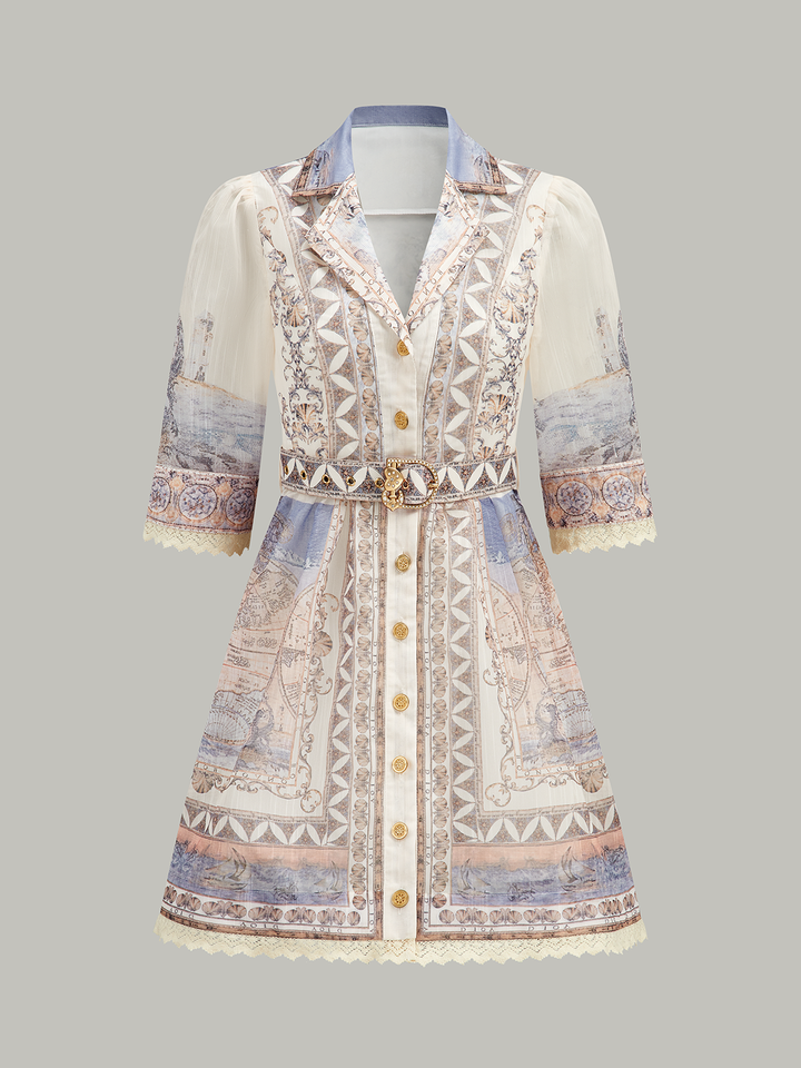 Kemerli Yarı Şeffaf Düğmeli Elbise