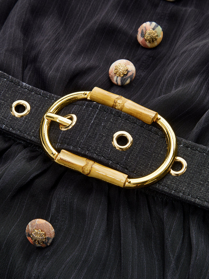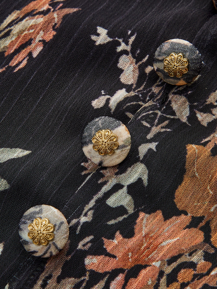 Yarı Şeffaf Şifon Çiçek Desenli Kemerli Elbise
