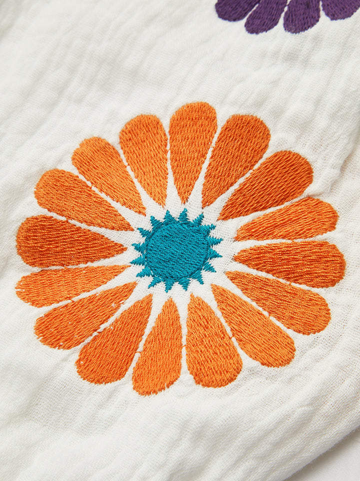 Yarı Şeffaf Nakışlı V Yakalı Çiçekli Elbise