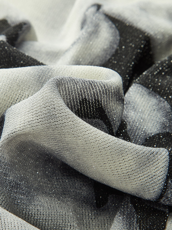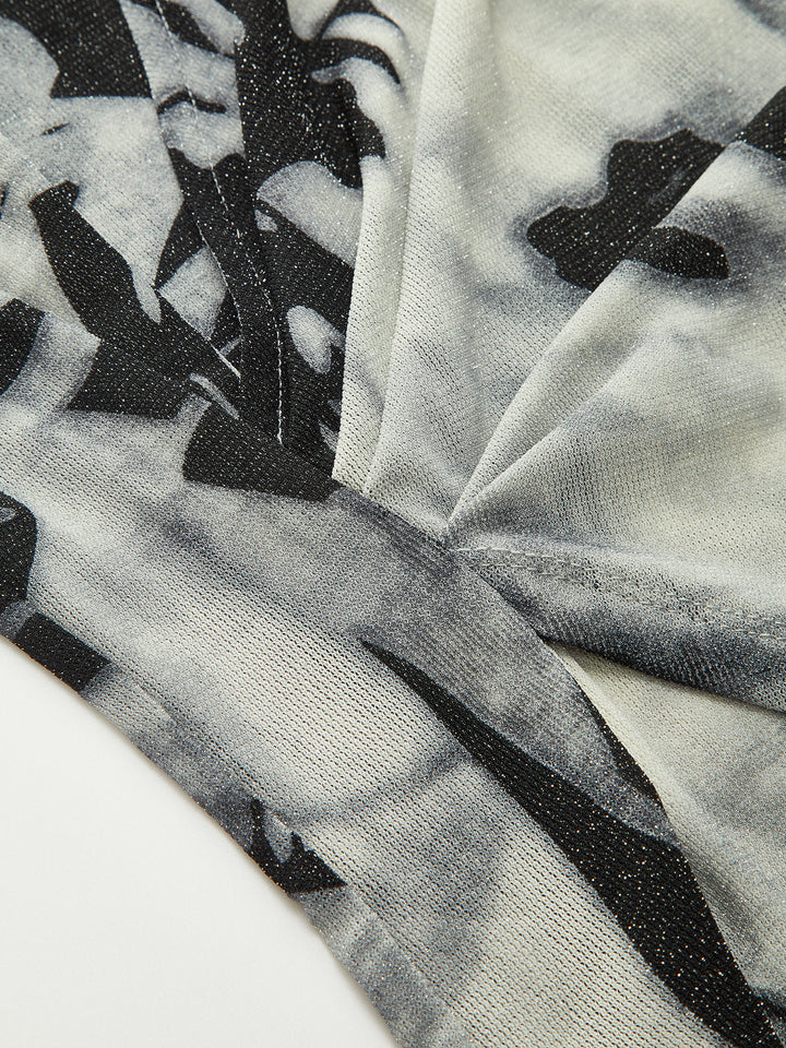 Yarı Şeffaf Uzun Kollu File Mermer Desenli Sarma Bluz