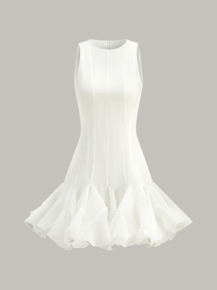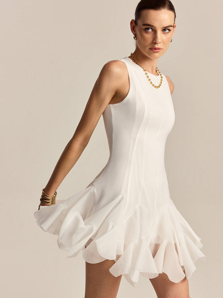 Yarı Şeffaf Volanlı Etek Ucu Mini Elbise