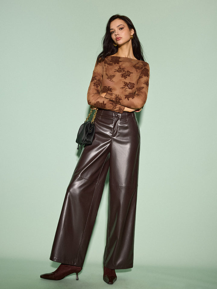 Yarı Şeffaf Düz Yaka Kadife Çiçekli Tişört
