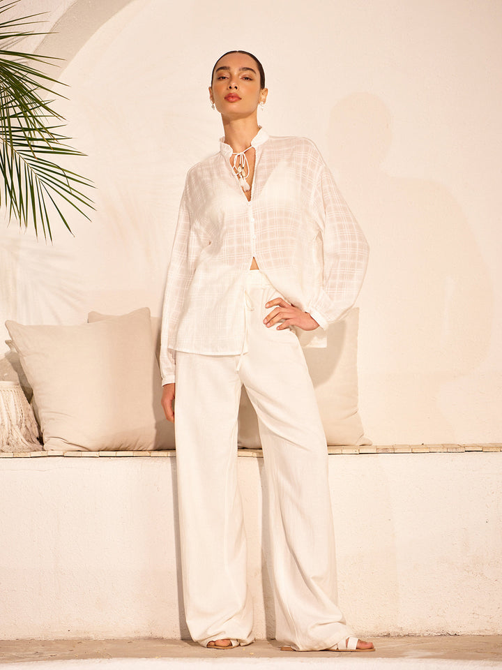 Yarı Şeffaf Püsküllü Kravatlı Gömlek
