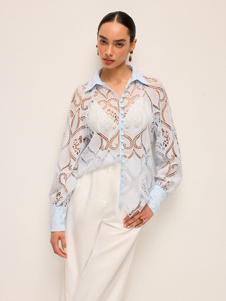 Kumaş Düğmeli Şeffaf Dantel Bluz