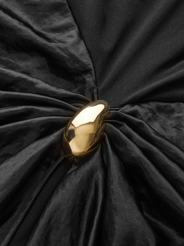 Kısa Kollu Büzgülü Metal Tokalı Elbise
