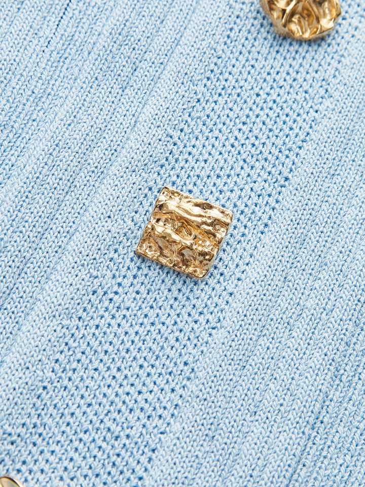 Kolsuz Önü Düğmeli Örme Uzun Elbise
