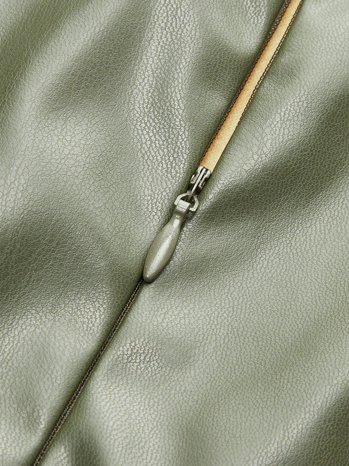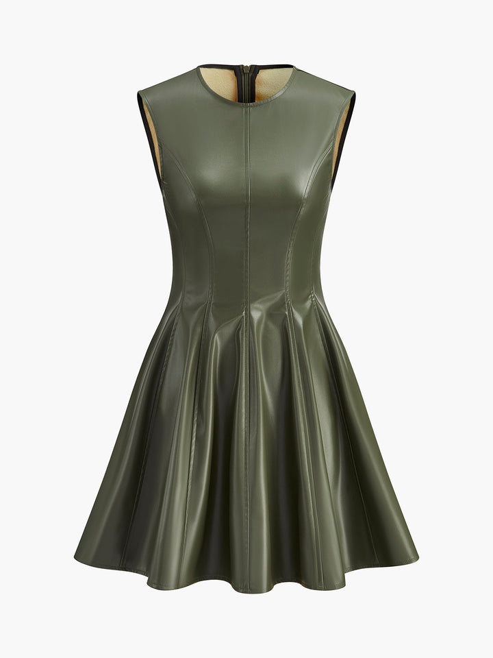 Kolsuz Pileli Suni Deri Kısa Elbise