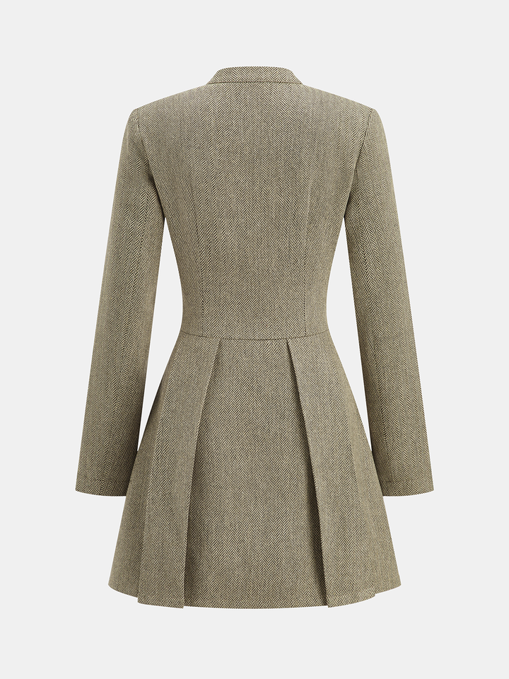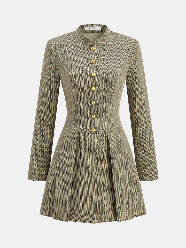 Çıtçıtlı Ekose Pileli Mini Elbise