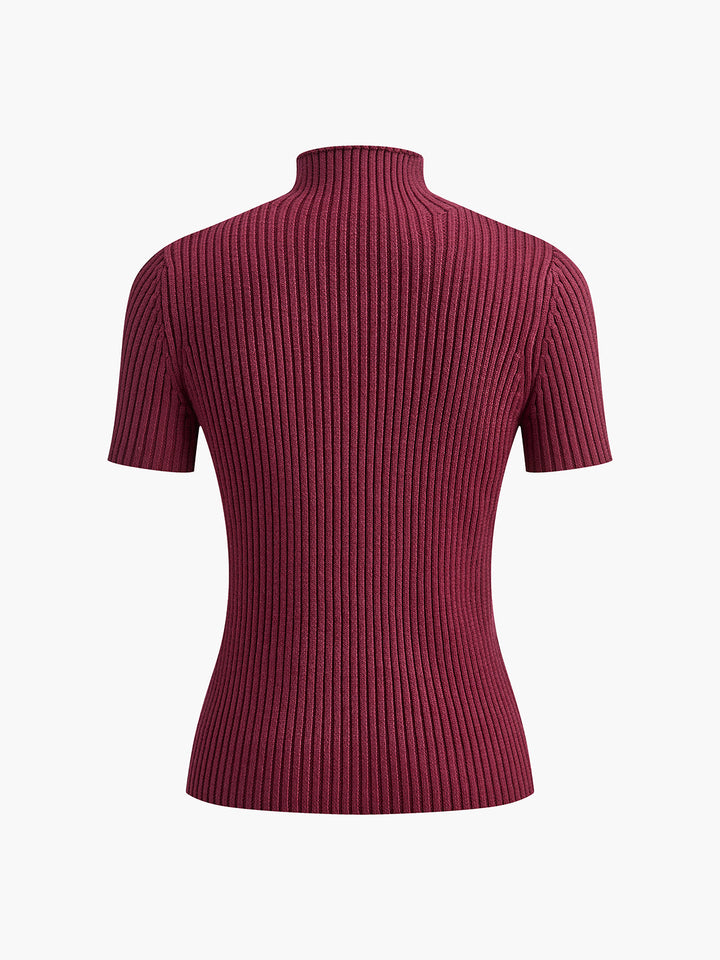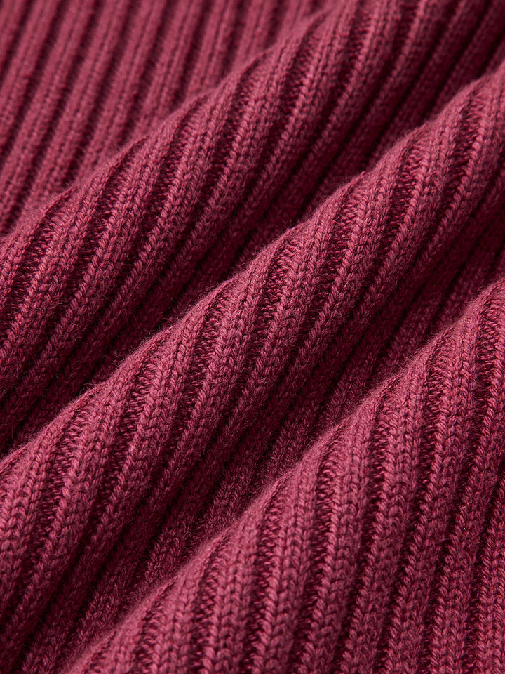 Düz Yüksek Yakalı Bölünmüş Ribana Örgü İki Parça Etek Takımı