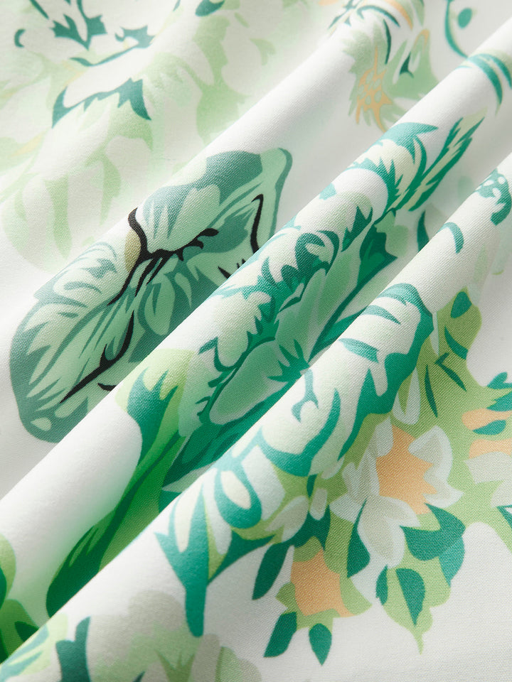 Kare Yaka Sırtı Açık Fiyonklu Çiçekli Elbise