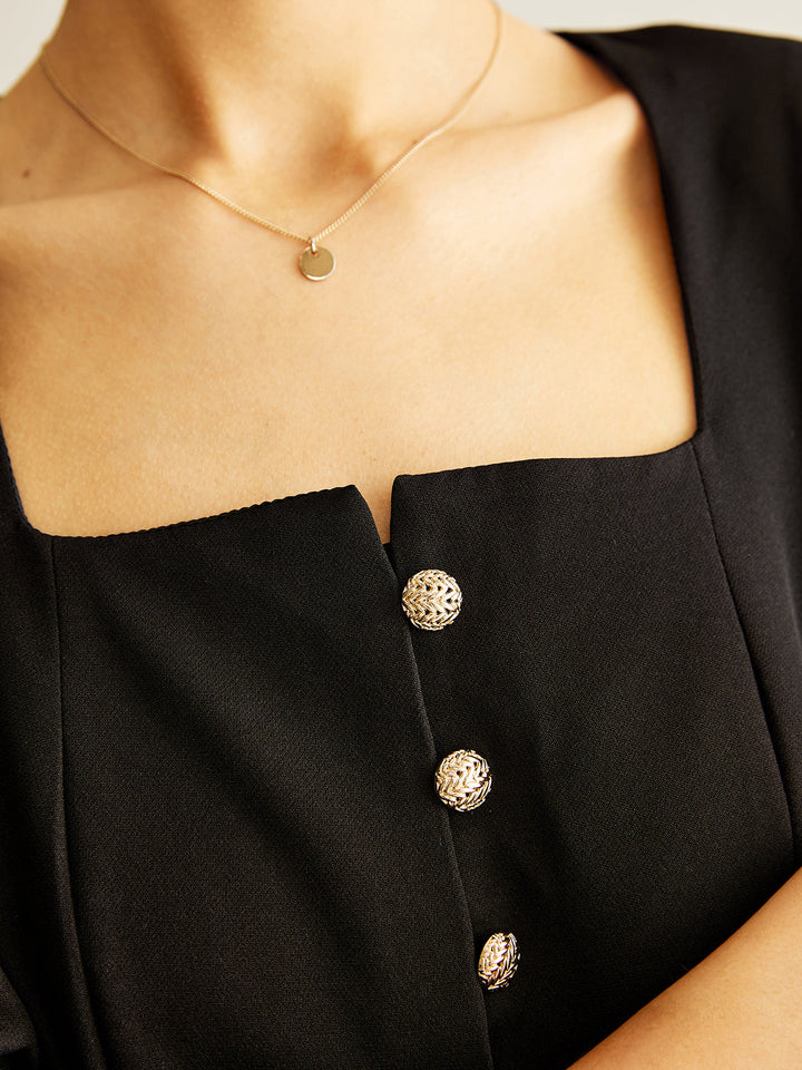 Kare Yaka Düğmeli Yırtmaçlı Bluz
