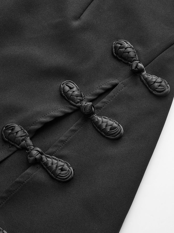 Dik Yaka Uzun Kollu Bilek Düğmeli Yan Yırtmaçlı Elbise