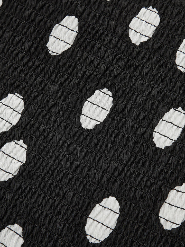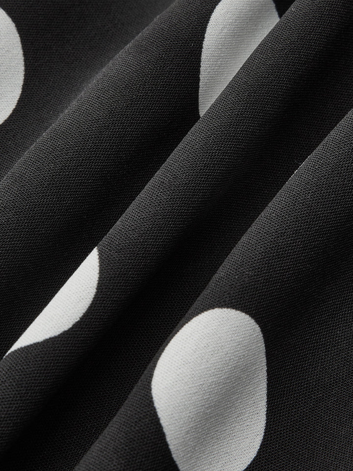 Straplez Puantiyeli Kıvrımlı Uzun Elbise