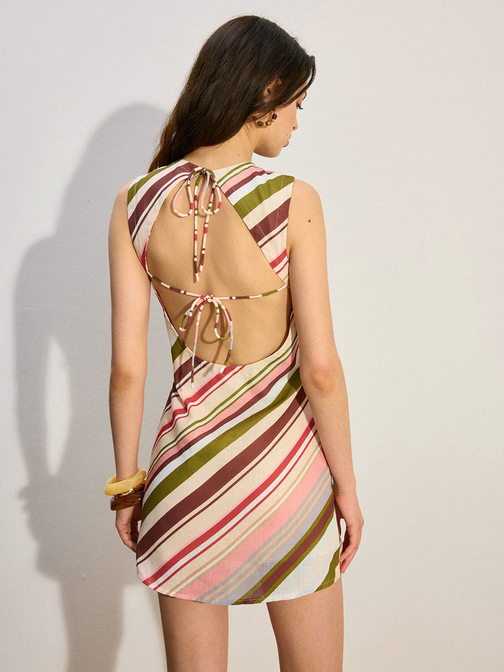 Çizgili Sırtı Açık Bağcıklı Elbise