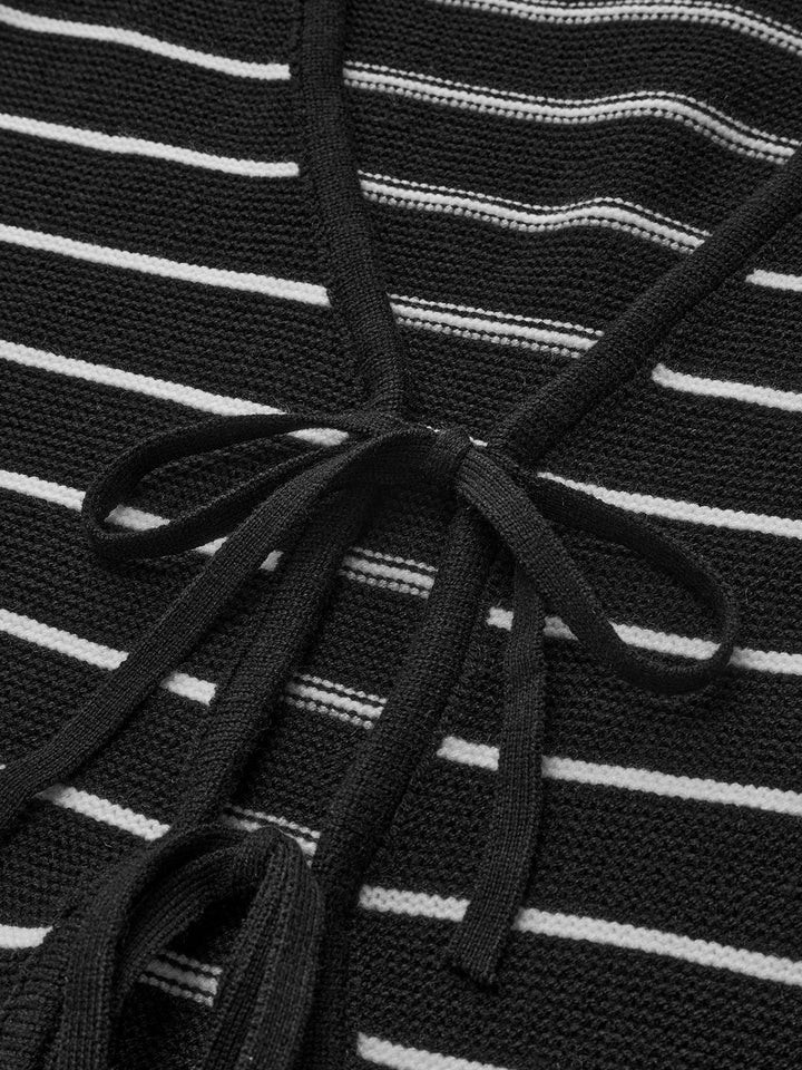 Çizgili V Yaka Önden Bağlamalı Kazak Yelek