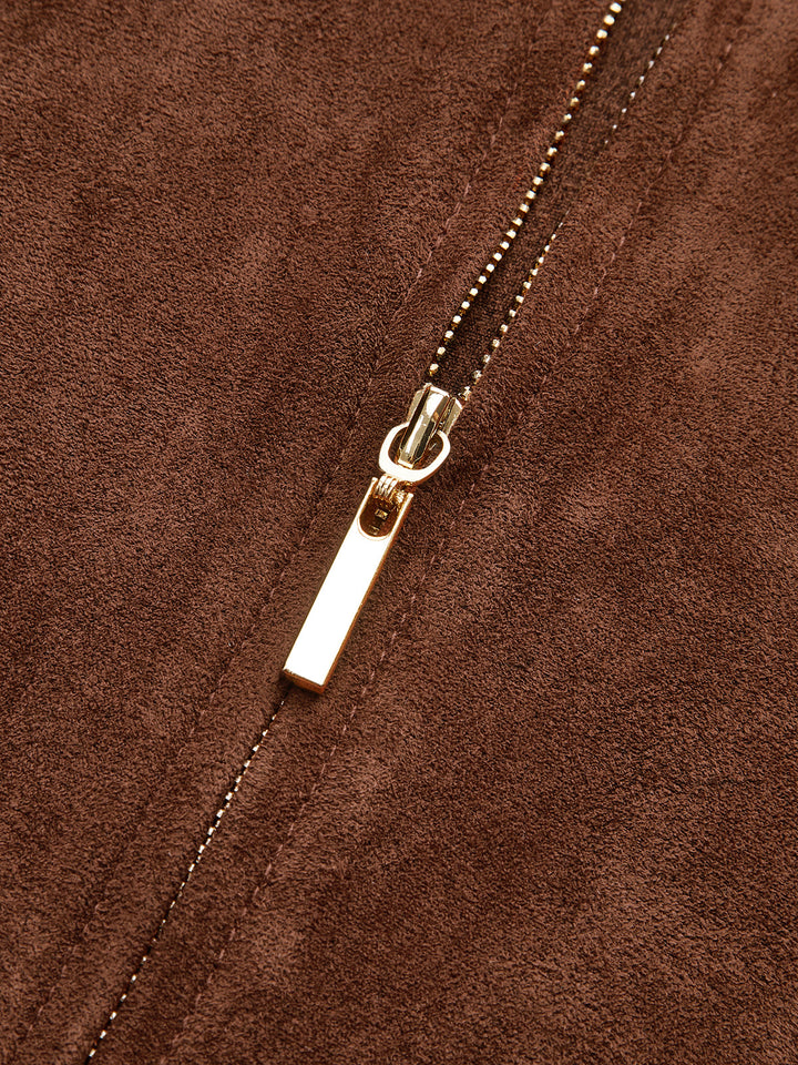 Süet Arka Fermuarlı Kısa Kollu Üst