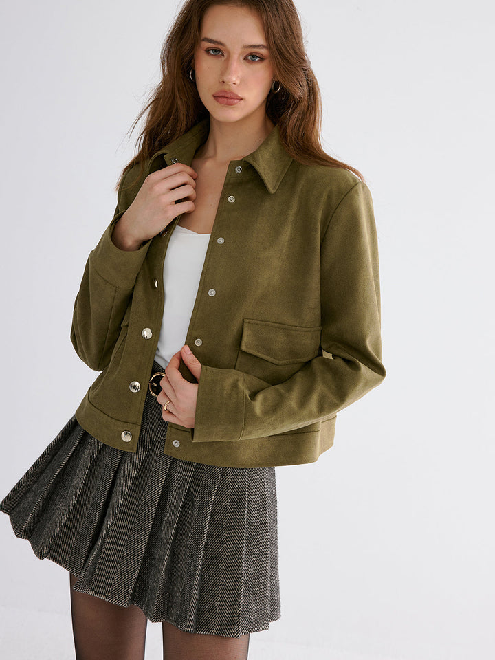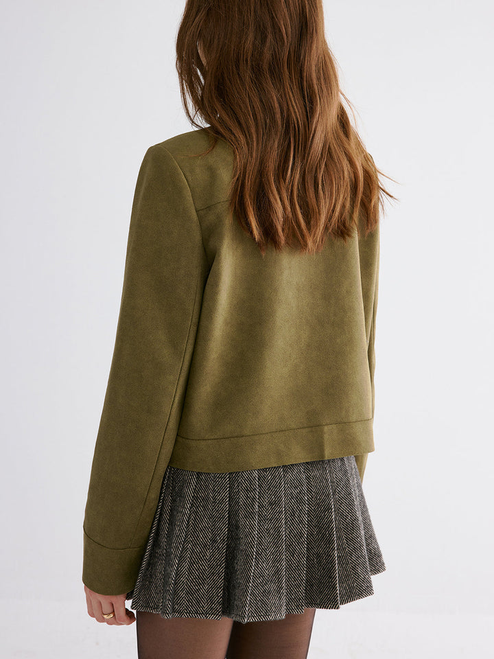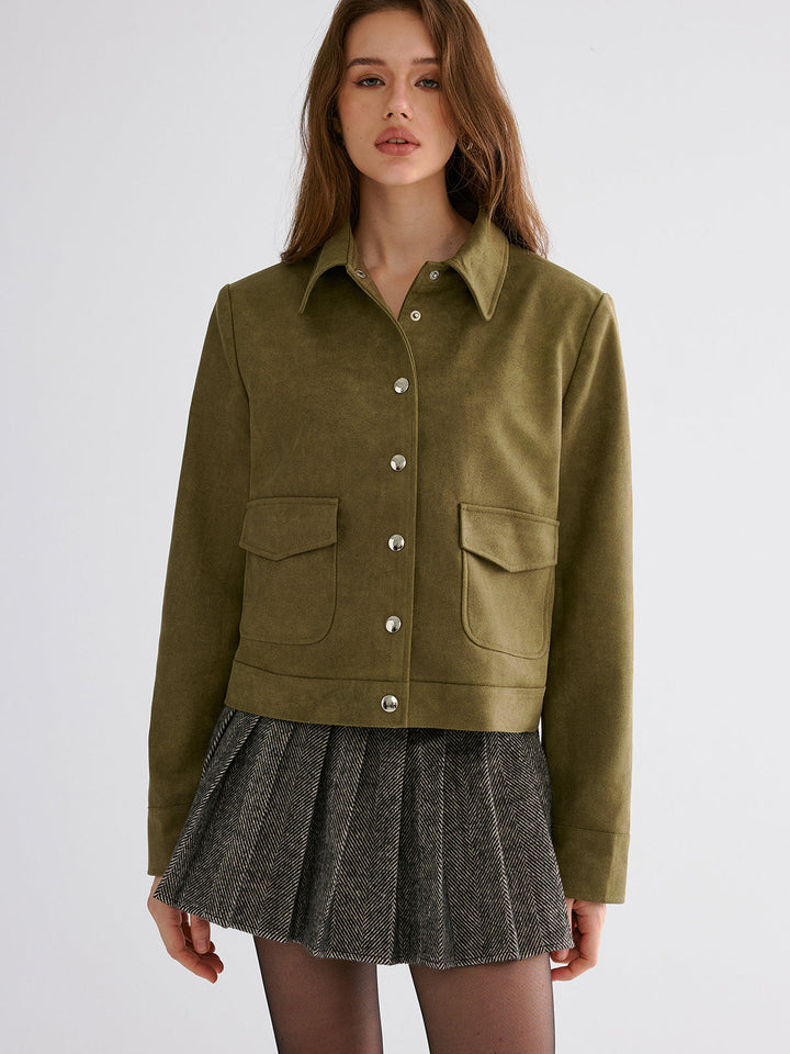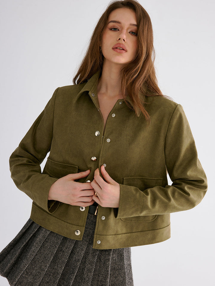 Süet Yaka Düğmeli Ceket