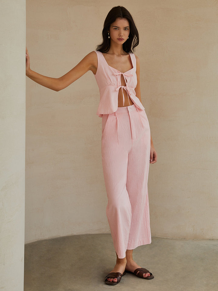 Tatlı Fiyonklu Dekor Pantolon Takımı