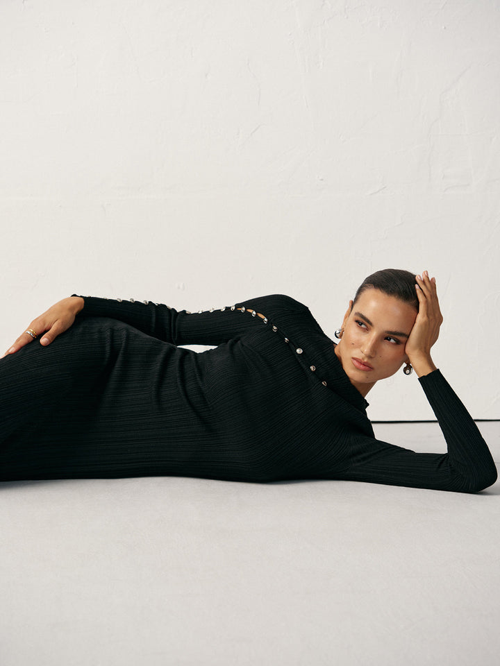 Dokulu İnci Yün Karışımlı Dar Kesim Kazak Elbise