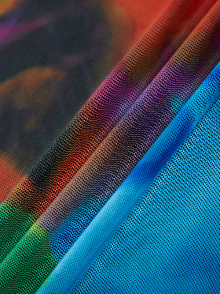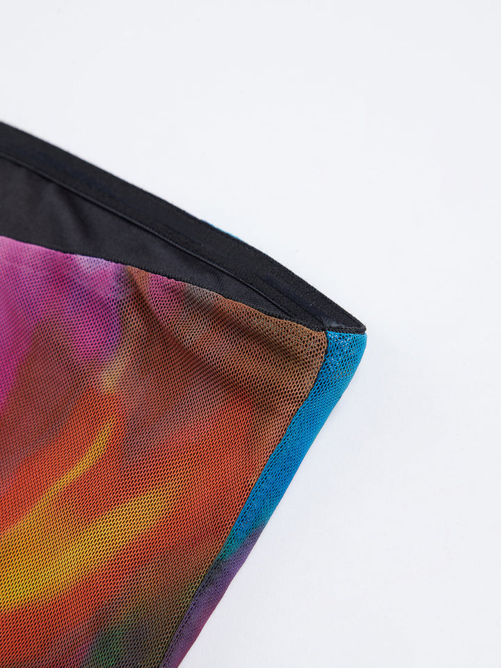 Tül Baskılı File Askısız Tüp Midi Elbise