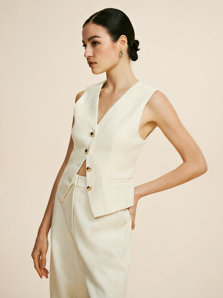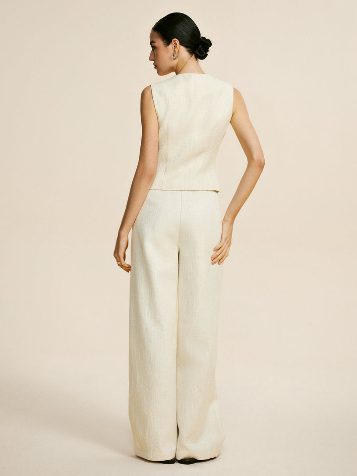 Tweed Kolsuz Bol Pantolon Takımı