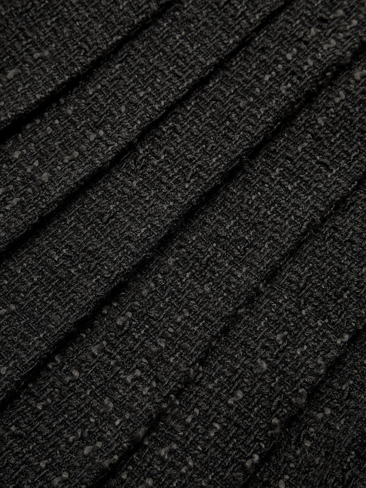 Tweed Kolsuz Pileli Mini Elbise ve Kemer