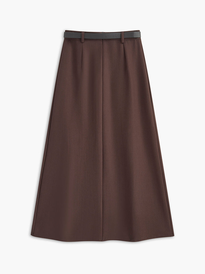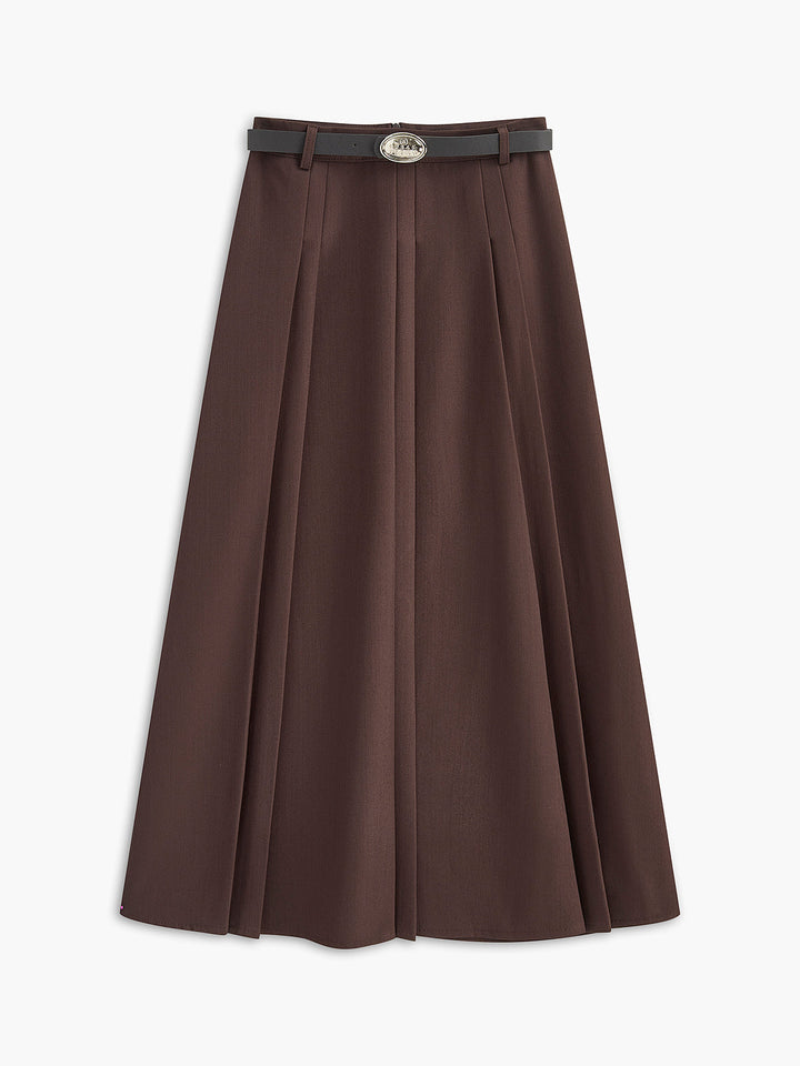 Faydalı Pileli Kemerli Midi Etek