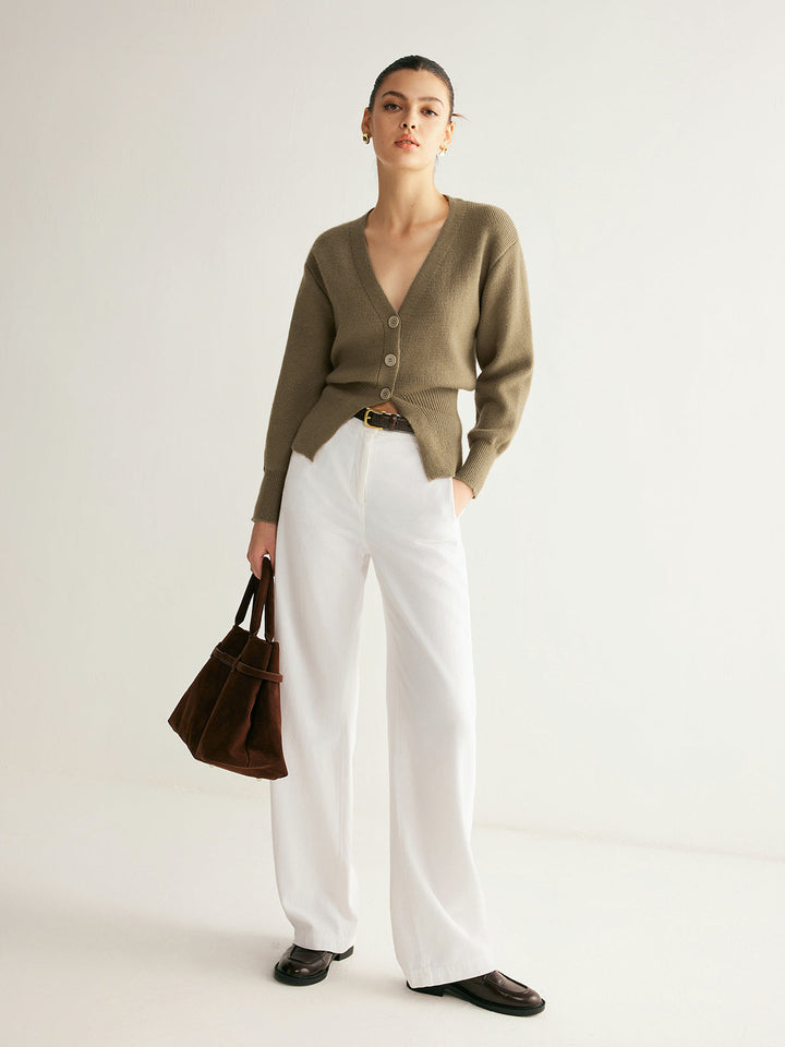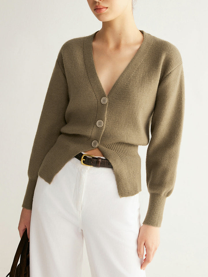 V Yaka Düğmeli Yırtık Kazak