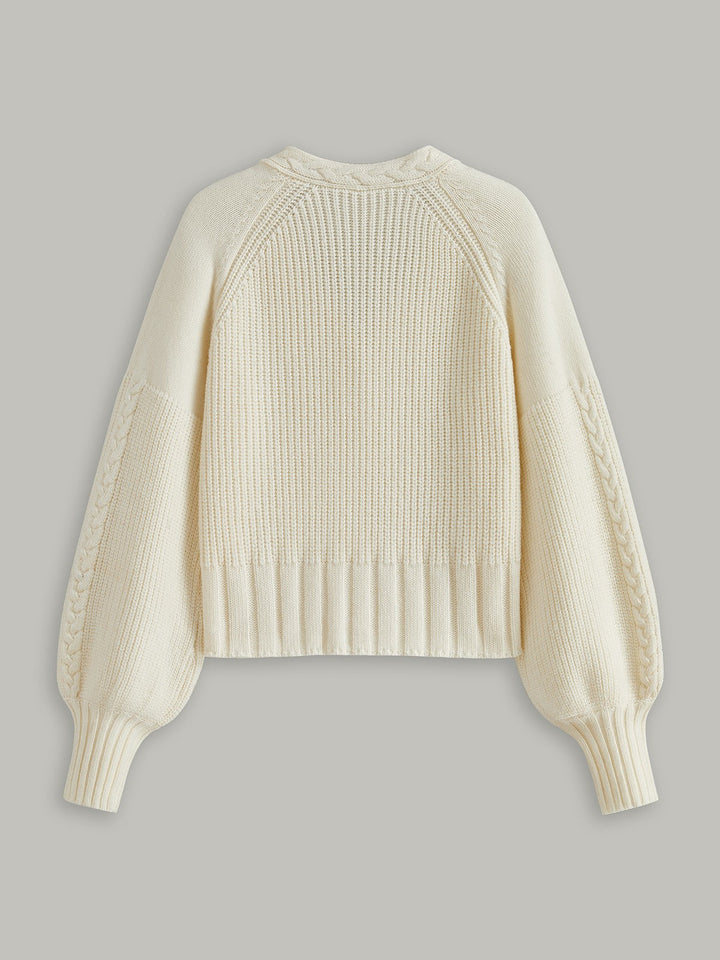 V Yaka Düğmeli Yün Karışımlı Örgü Hırka
