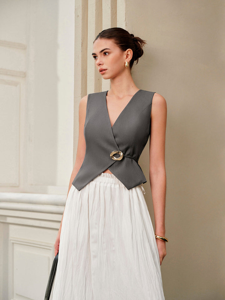 Kemerli V Yaka Metal Bağlamalı Yelek