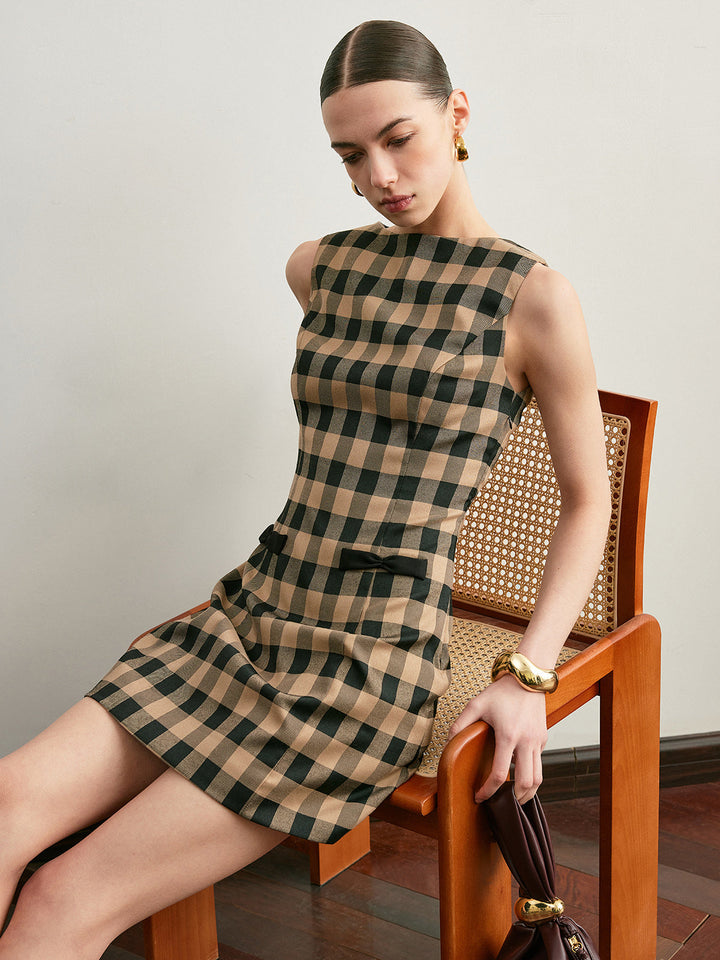 Vintage Ekose Kolsuz Fiyonklu Elbise
