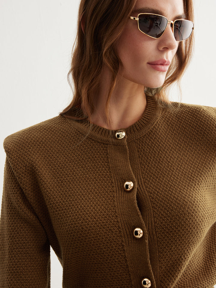 Vintage Yün Karışımlı Düğmeli Hırka
