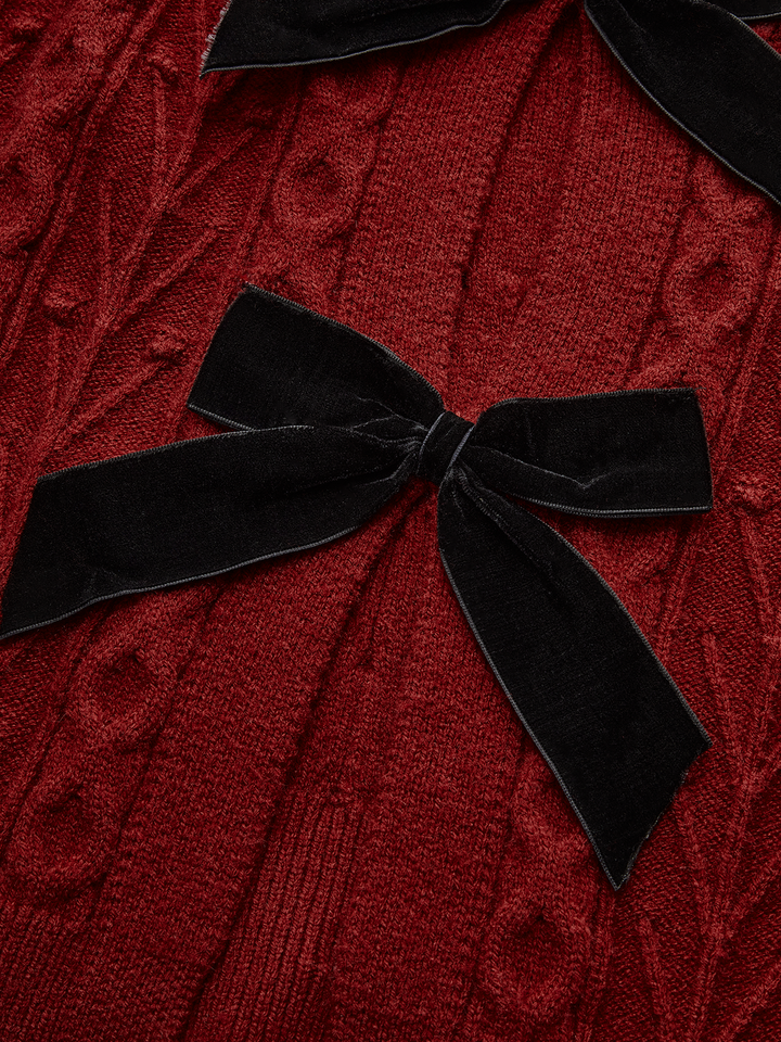Wool Blend Bow Cable-Knit Cardigan