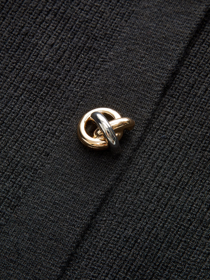 Wool Blend Denim Collar Puff Sleeve Cardigan
